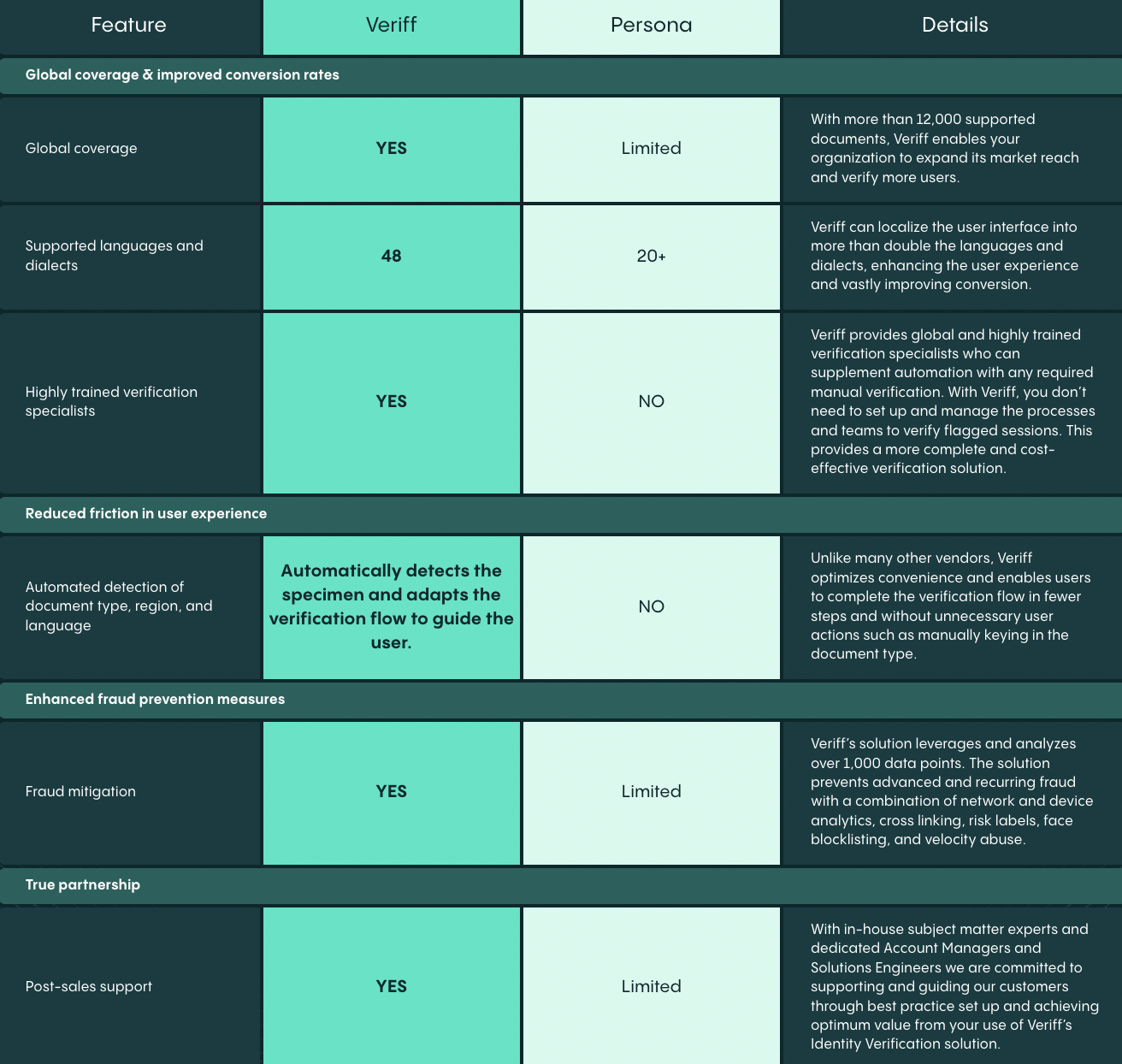 Against Persona, Veriff’s global reach and expert verification specialists were highlighted.